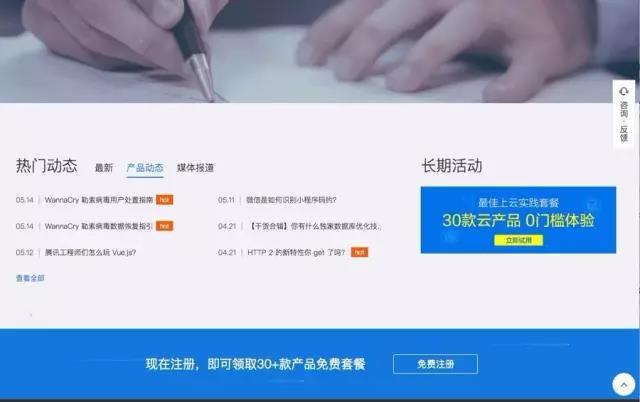 腾讯云官网首页最后,显示一个行动号召,吸引用户继续停留在网站上。