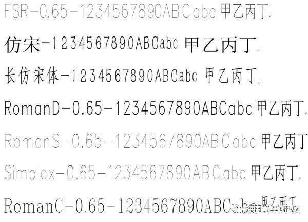 ①、一种是表示1,2,3,4,a,b,c,d,e这种简单符号的字体,例如上图左侧的simpex.shx字体,或者我们在CAD里常见的gbenor.shx