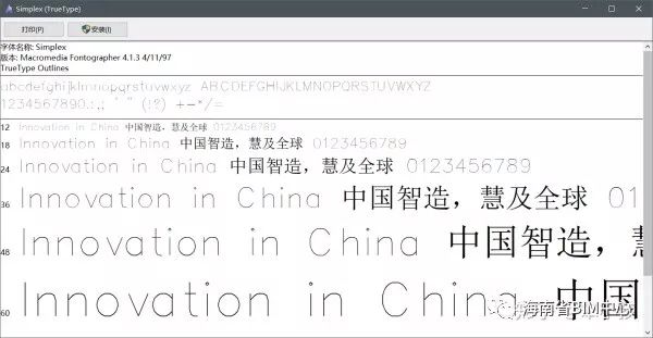 因为simplex只能单线表示数字字母,汉字它表示不了,所以系统就用其他字体表示汉字了,就成了下面的样子。
