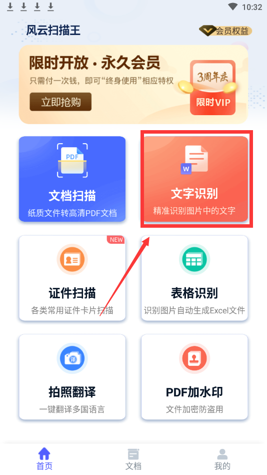 首先,我们需要确保已经安装了风云扫描王app,并且已经给予它访问摄像头的权限。打开app后,你会看到一个简洁明了的界面,上面有“文档扫描”、“表格识别”、“照片识别”等功能选项。在这里,我们选择“文档扫描”模式。