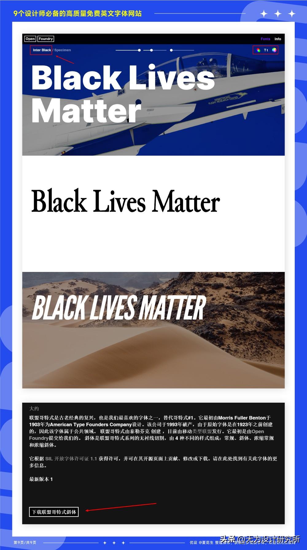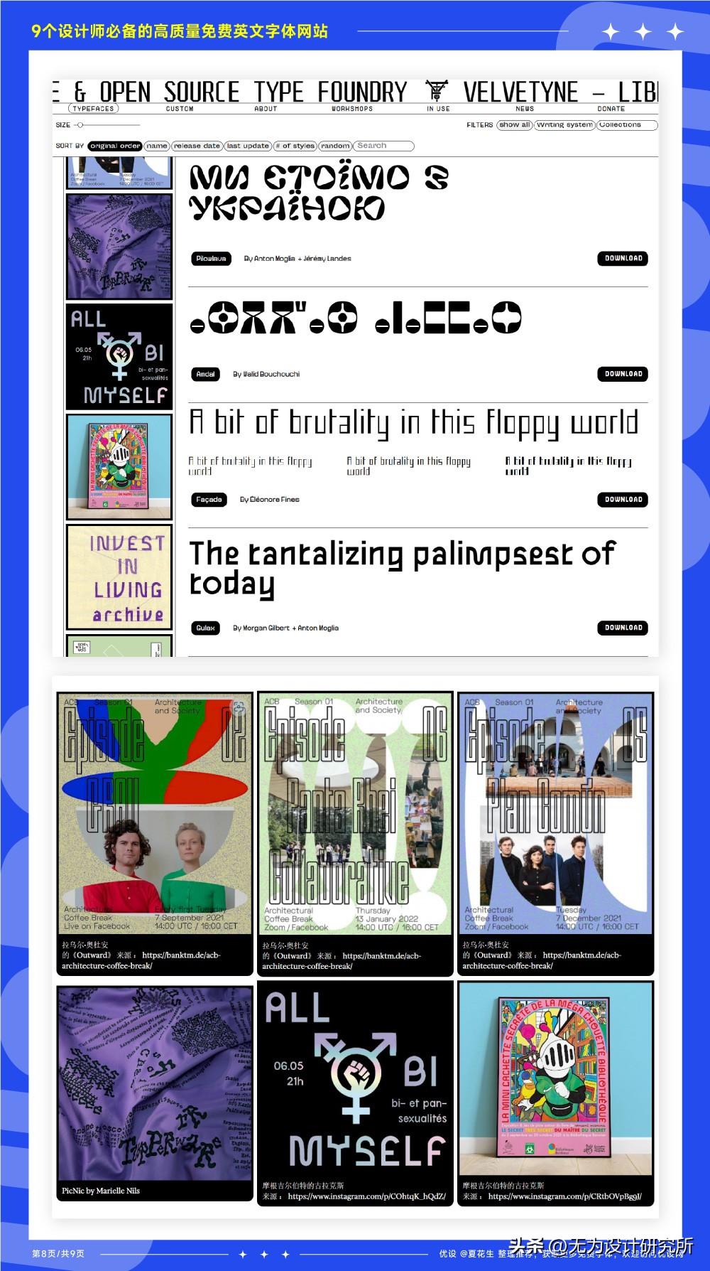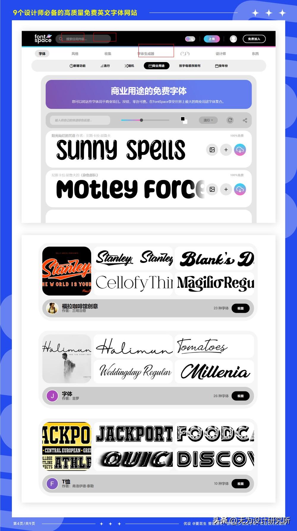 以上就是今天为大家推荐的 9 个下载免费可商用英文字体的宝藏网站,需要的小伙伴记得收藏起来 ~ 喜欢本期推荐的话请大家多多点赞支持,我会更有动力为大家推荐干货知识。有关于本文或者设计的问题可以在评论区提出 ,我会第一时间回复~
