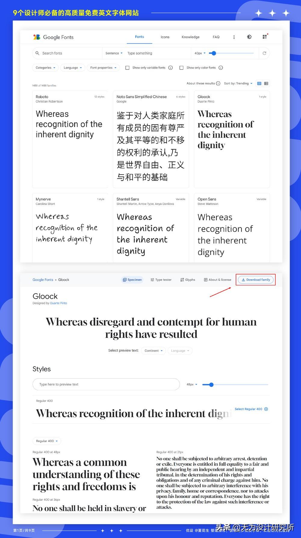 之前为大家推荐了很多期的免费可商用英文字体,它们风格各异,适合不同的设计场景,但也只是众多免费英文字体中的极小一部分。所以今天为大家推荐 9 个我常用的外国英文字体下载网站,它们收录的字体数量庞大,风格类型全面,下载便捷,并根据字体风格、特征、使用场景进行详细了分类。有了这些网站,以后就不愁找不到免费又好看的英文字体啦 ~一、Google Fonts