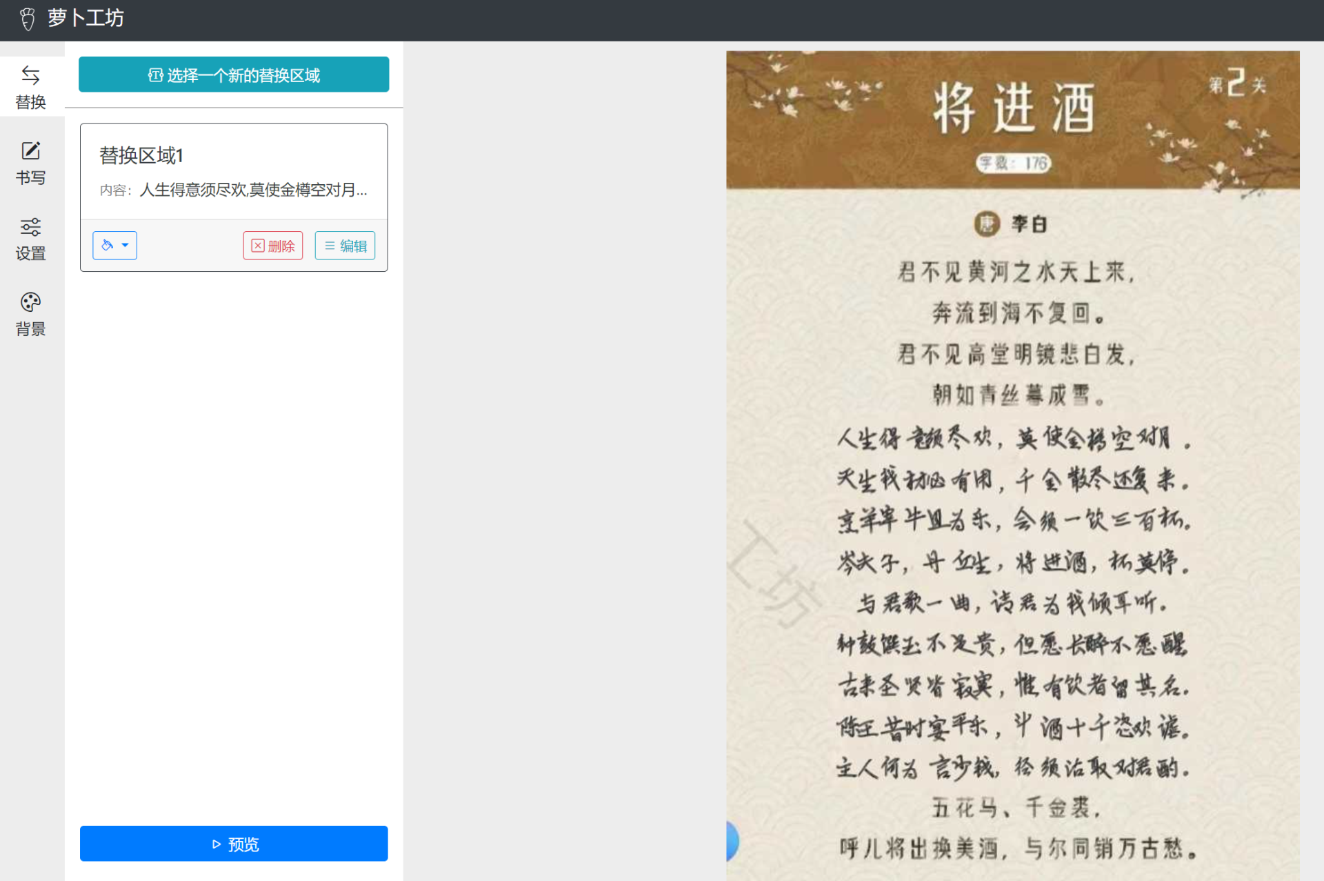 这款工具是生成手写风格文稿和照片的理想选择,适合需要手写风格文稿的用户。无论是制作个性化文档还是快速完成抄写任务,它都能提供便捷、高效的解决方案。
