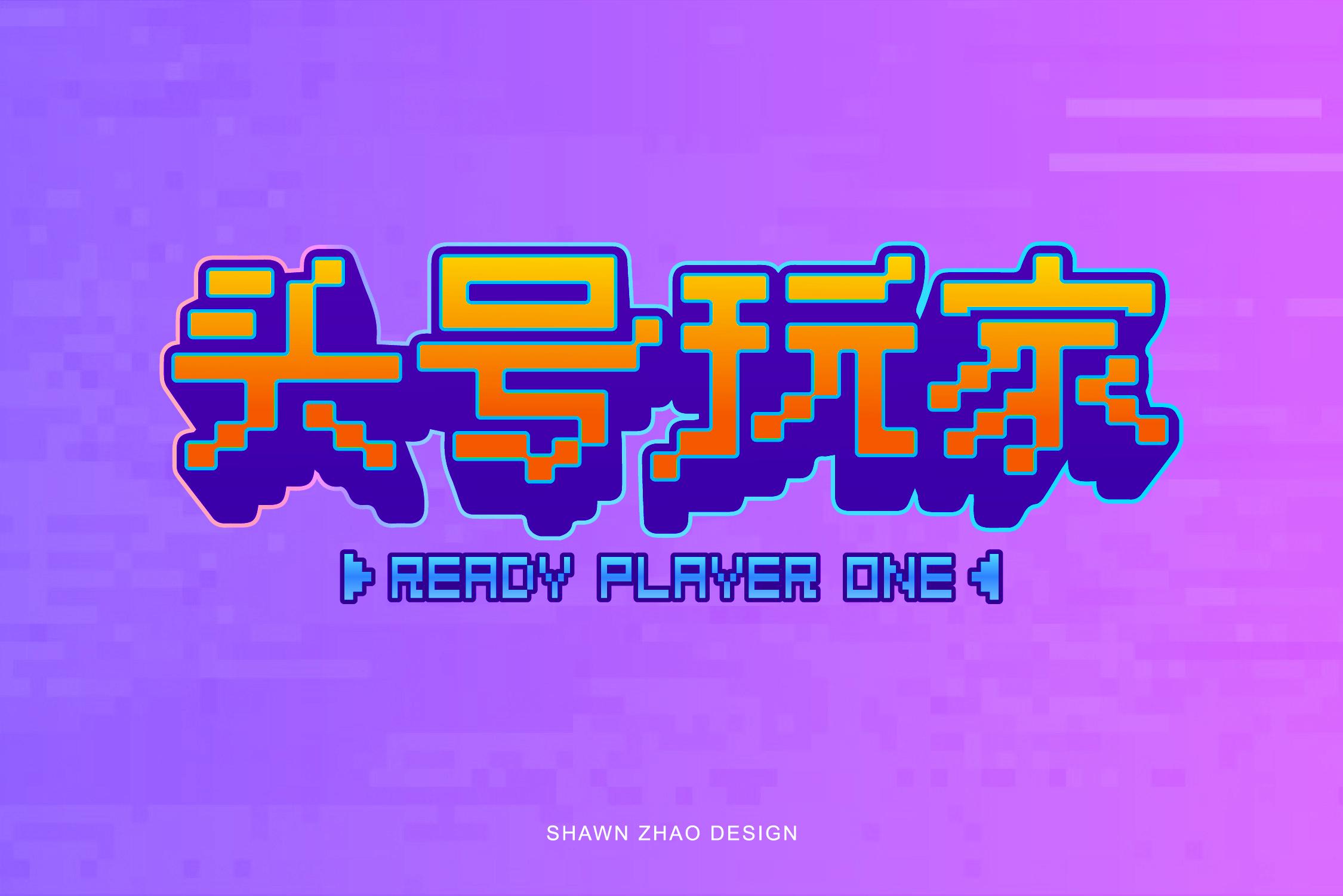 第三步是根据临摹的字的笔画特点,再做“头号”2个字,然后再和“玩家”2个字组合到一起。