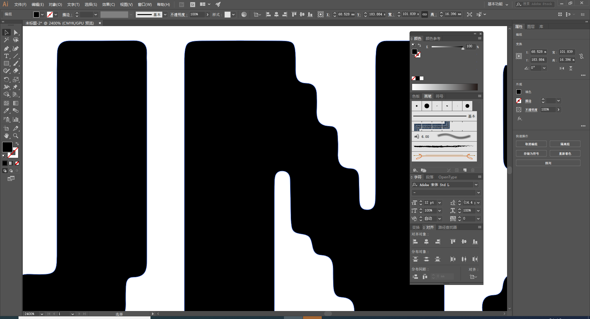 我们点击“图像描摹”右侧,选择“剪影”,然后点击“扩展”,这样,这个文字就转换成矢量的了。