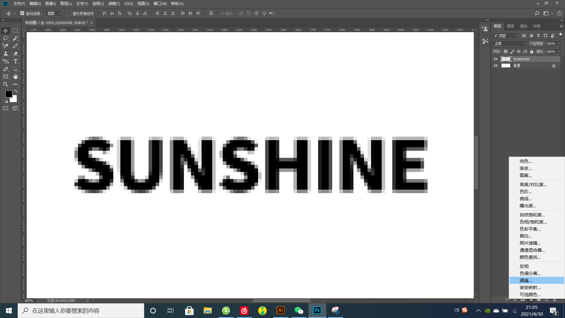 我们新建一个“阈值”调整图层,然后移动滑块的位置,调整文字的效果。
