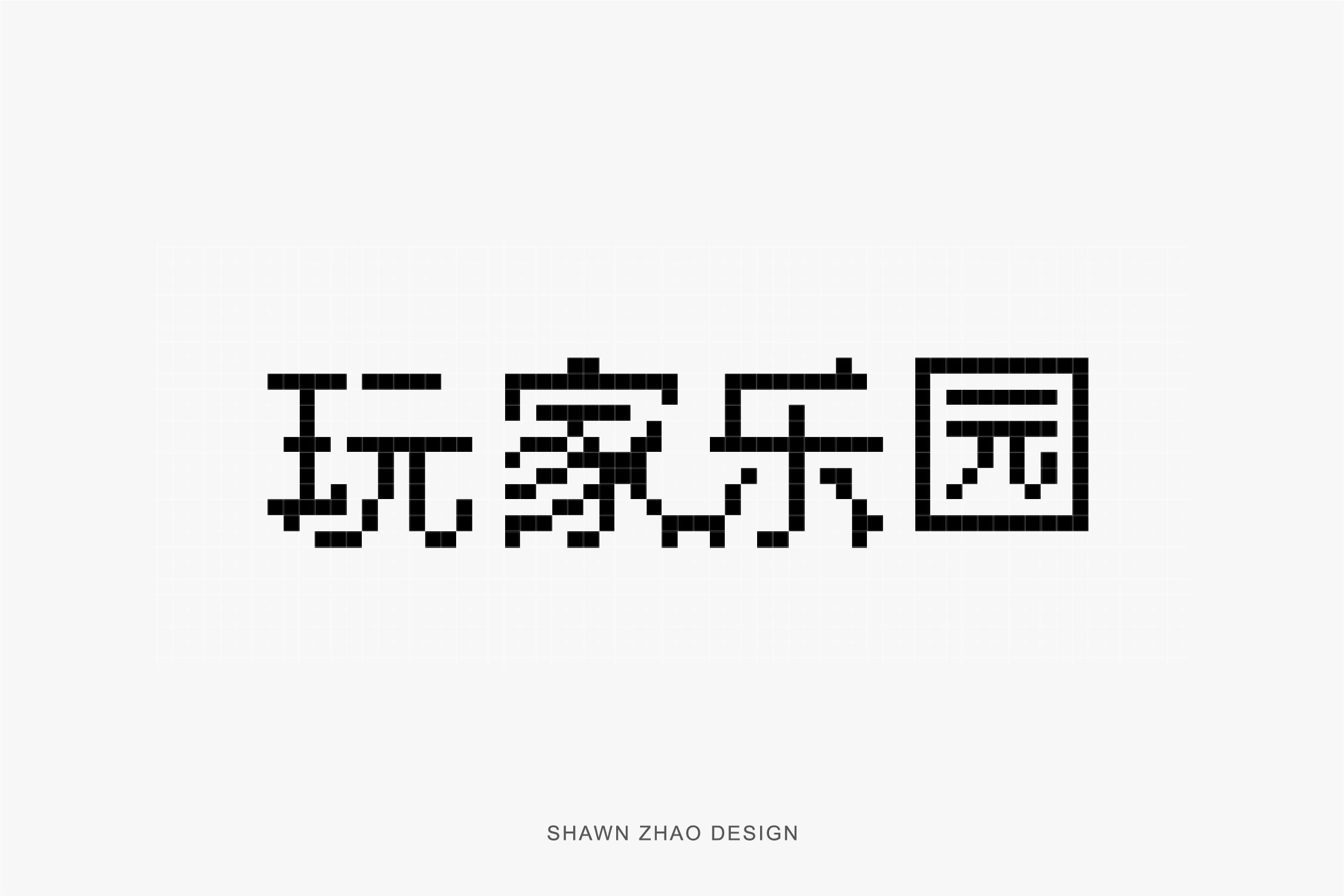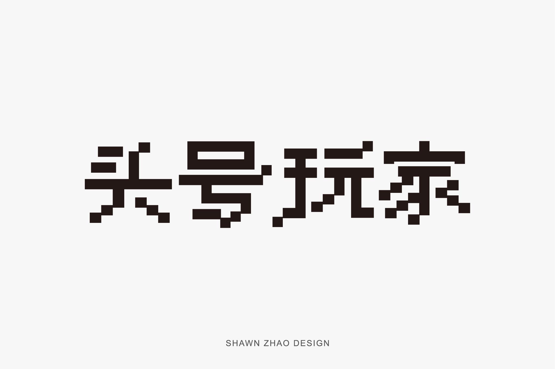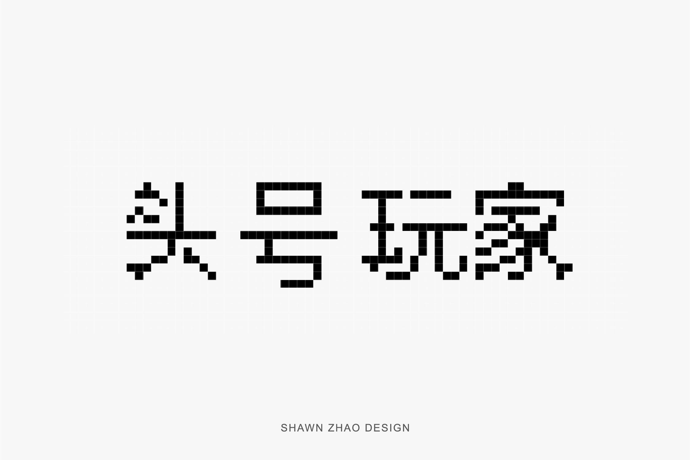 第二步是把字体临摹出来,先感受字的结构特点是是顶部应用像素的元素少一些,保持上半部分的稳定。横竖笔画少做像素化处理,撇和捺以及点可以适当的做像素画处理。
