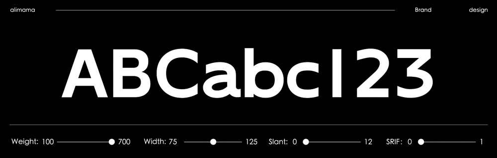 阿里妈妈灵动体(alimama agile)是一款西文可变字体,包含了字重、字宽、倾斜、衬线四种可变轴,英文大小写共52个;常用标点符号共68个,总计120个字符。
