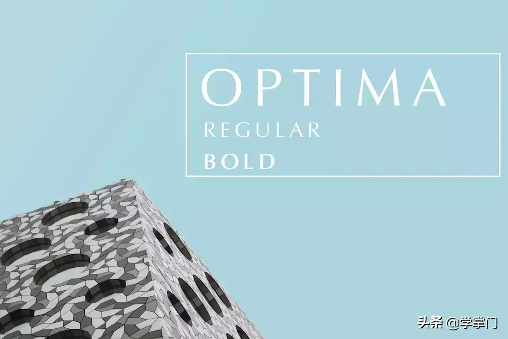 Optima字体由于没有衬线而被纳入无衬线体,但是它其实不算是典型的无衬线体。相比于无衬线体的单一的笔画粗细程度,Optima字体有一些粗细的过渡,这让它看起来有点旧式体的味道。正是由于这种细微的粗细过渡,反而让Optima字体变得更加优雅和古典,在很多设计场合收到欢迎。