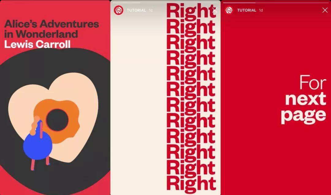 最大的难题是Instagram Stories原本自带的自动翻页功能,为此他们请艺术家在每部书的右下角制作了与书中内容相关的“Thumb Rest”,翻页时形成动画效果,反而成了新的风景。