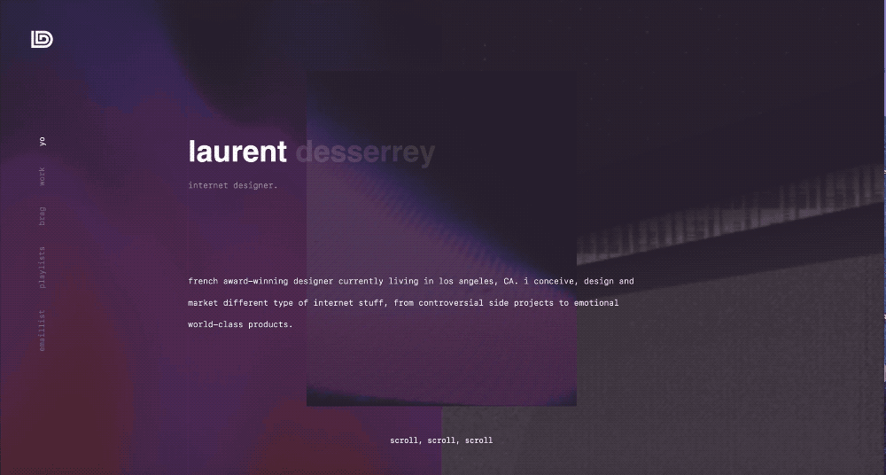 Laurent Desserrey设计了一套令人着迷的作品集网站,网站借助失控的效果和等宽字体创造出粗野的视觉效果。