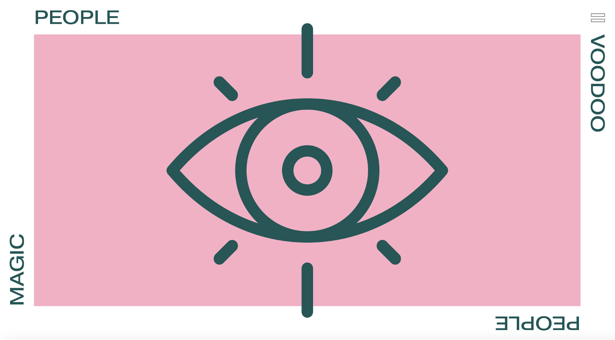 在创意机构 Magic People Voodoo People的网站上,则在四角上使用了水平和垂直的文本来昭示它的名称: