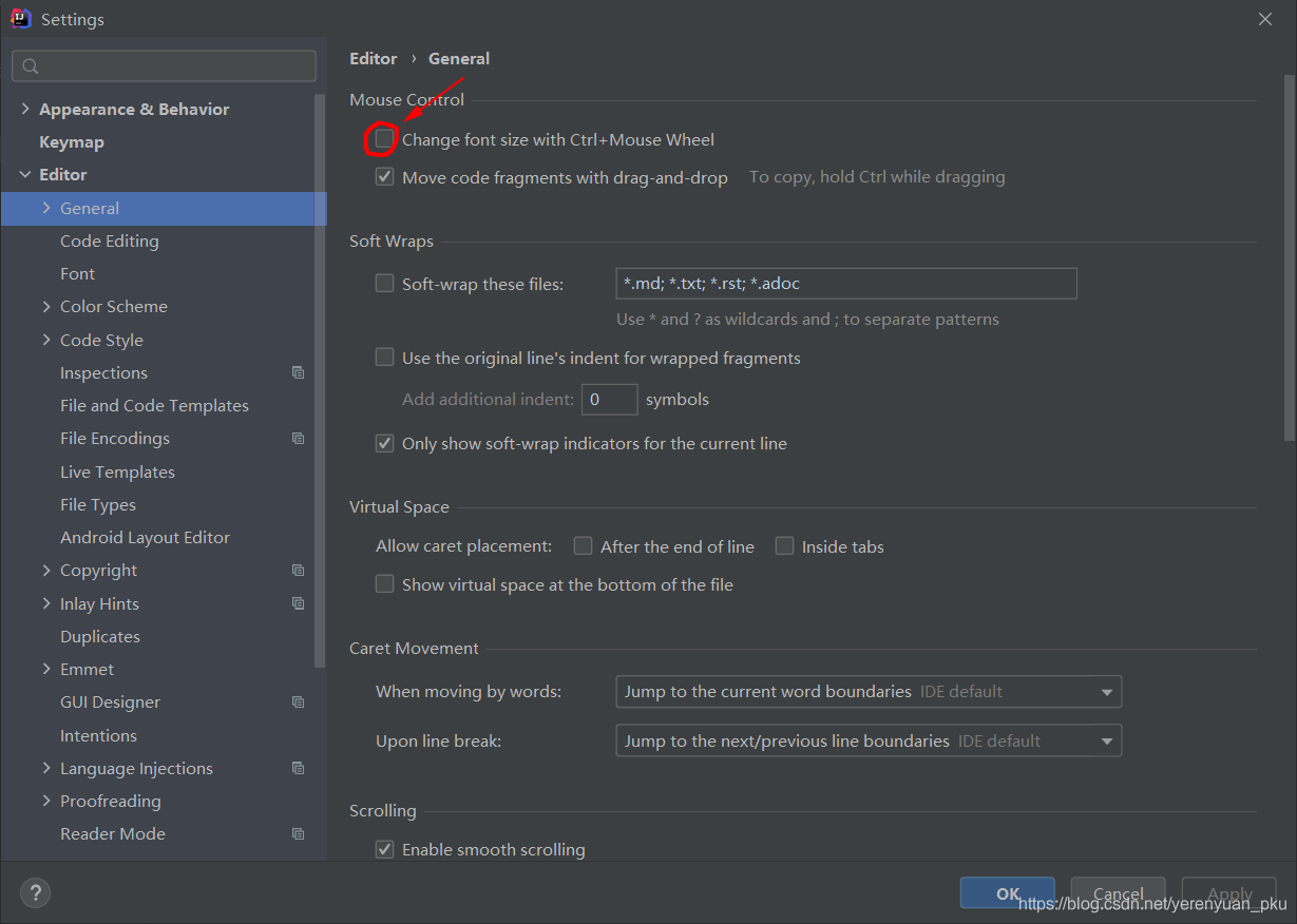 所以,你可以根据自己的需要勾选上Change font size with Ctrl+Mouse Wheel前面的框框哟~