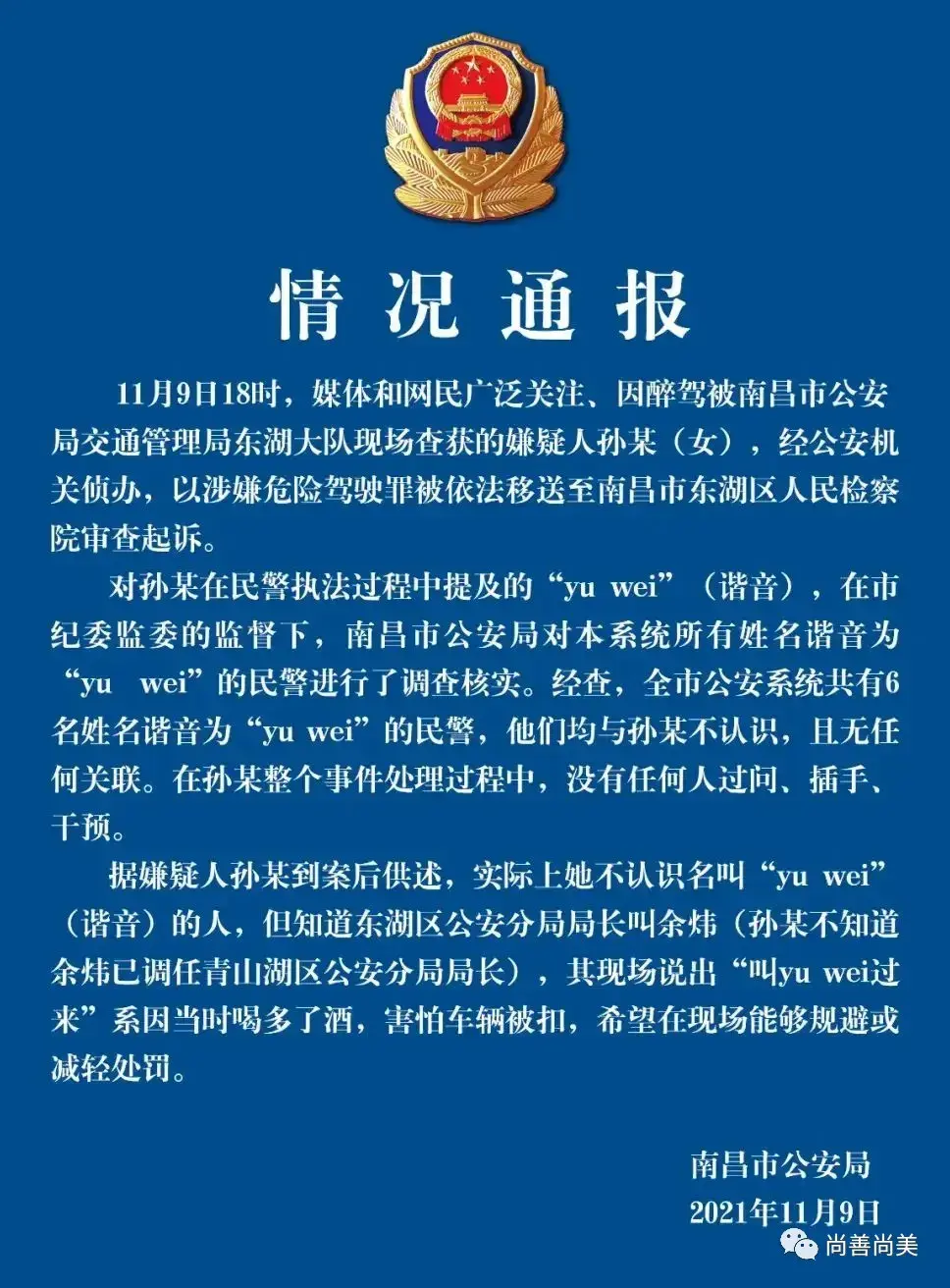 昨天南昌市公安局发出情况通报后