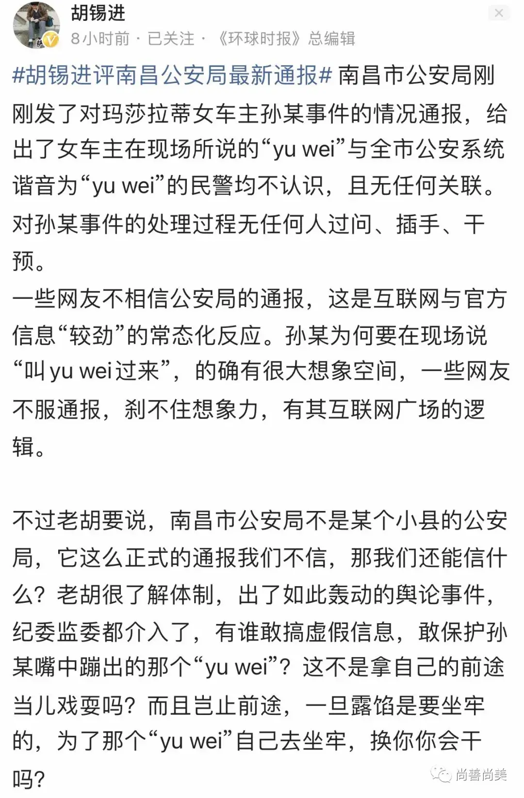 我希望南昌公安能经得起内外监督和舆论监督的