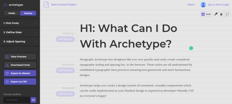 如果你在寻找相互匹配的字体群,不妨试试 Archetypeapp。借助 Archetypeapp,设计师可以在浏览器中实时设计字体,现场体验不同字体设计和行距样式带来的视觉感受。