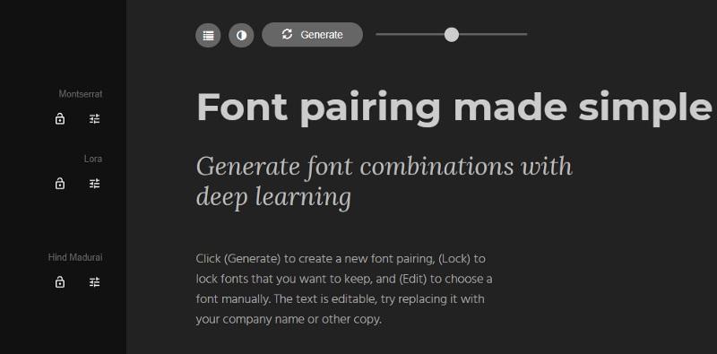 点击生成(Generate)按钮,即可生成新的字体搭配。点击锁定图标,即可锁定你想保留的字体。点击编辑图标,即可手动选择字体。搭配好字体后,就可以进一步设计字体层次了。层次构建主要体验在标题和正文不同字体大小的视觉关系。恰当的层次,能让用户更容易理解不同内容之间的关系,提高可读性。