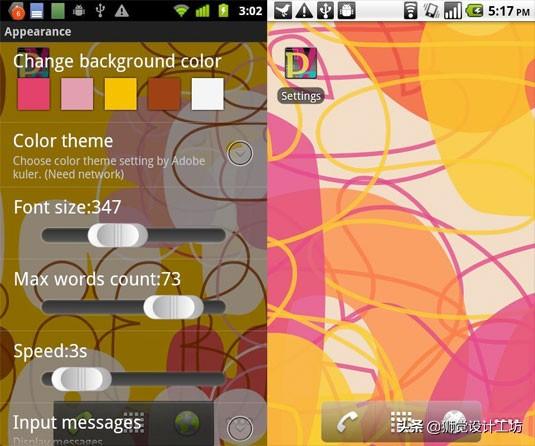 通过这款应用的编辑,可以创建自己的字体壁纸。内置Adobe Kuler。可创建动态字体壁纸。