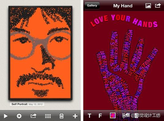 很有趣的工具,先选择字体,然后用手指在屏幕上作画,可调整字体大小、字距、旋转角度、颜色。