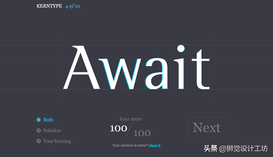 Kerntype 不只是工具,还是个小游戏。游戏玩法很简单,你只需要调整字母间距,实现最佳的视觉体验。这个游戏能培养和提高你在字体间距设计方面的能力。
