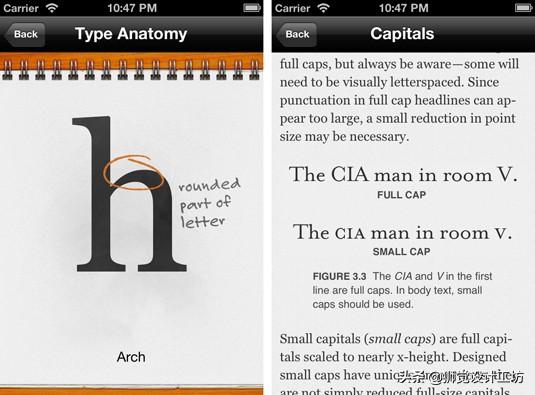 若想学习字体设计,这是必列应用,这款应用会教你如何观察不同字体的细节,然后教你如何设置字体的具体参数。