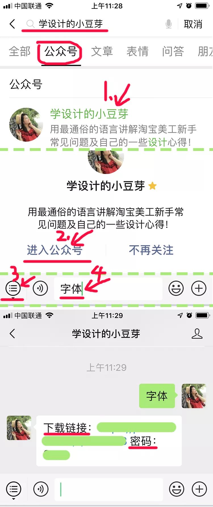 先免费给大家提供下载地址搜哦,搜索并关注公众号,后台回复:字体 这2个字就会自动发送给你了! 有些小伙伴不知道怎么在后台回复,或者老是回复错了位置,所以今天把具体操作方法给大家做了一个简易的教程,如下