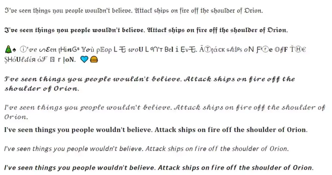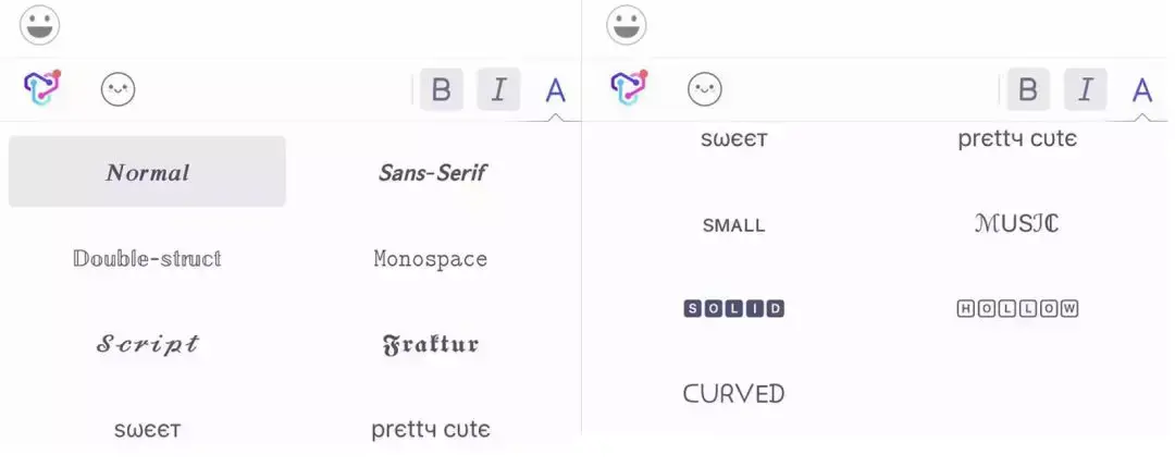 相对于第一种方法来说,输入法的效果相对少一些,主要能设置加粗、斜体以及一些内置的花体样式。