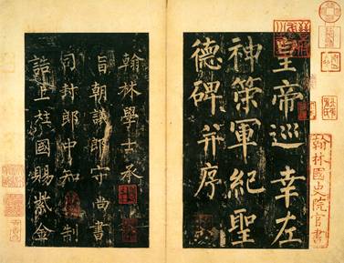 唐代是书法繁荣发展的朝代。从行书说,宋《宣和书谱》列晋至宋五十八人,唐代即占二十八人,有些以楷书著名盖过行书的书家尚未计算在内。唐代以楷书闻名于世,但行书成就也极为可观。唐初四大家的行书都是很有成就的。到盛唐时的李邕,更以行书著称于世,并继李世民以行书入碑。以后颜真卿的《祭侄文稿》,被世间称为继王羲之《兰亭序》为天下第二行书。晚唐李白、杜牧、林藻、苏灵芝、释怀仁等等,都被《宣和书谱》入为行书家之列。