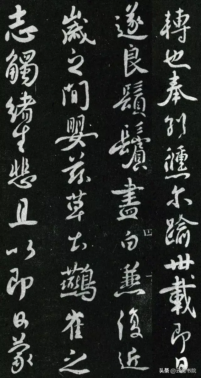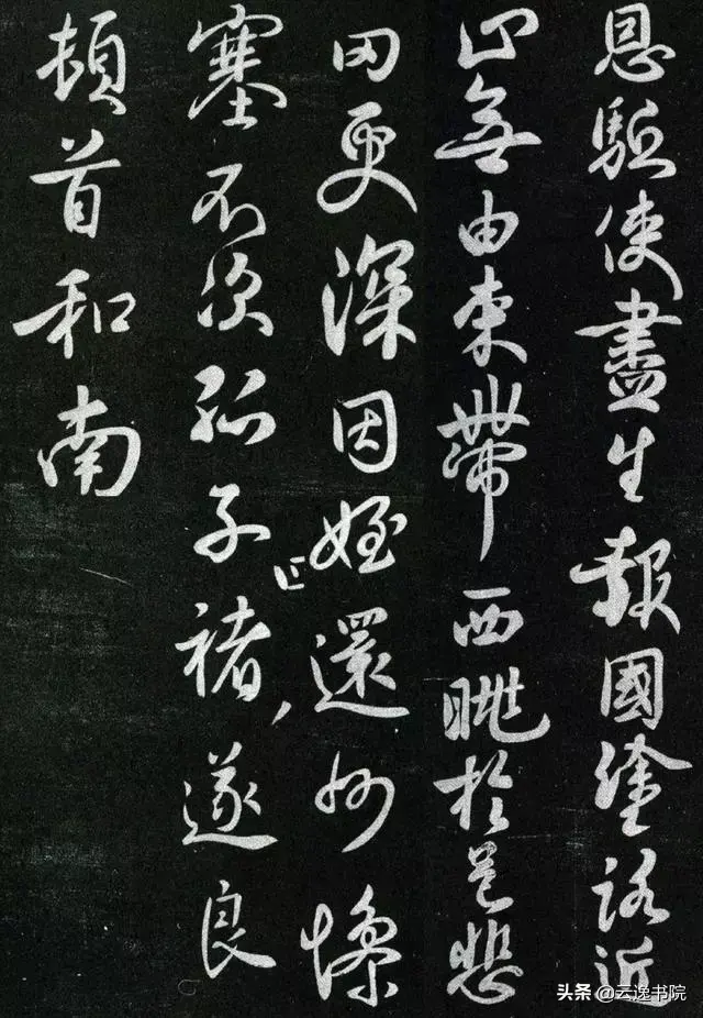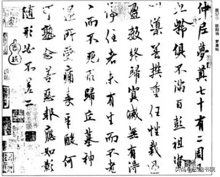 此帖与前帖法度均属“二王”,萦带生动有姿,点画纷披,苍劲中不无秀媚清逸,结体变化也很丰富,故有人把它作为学习行书的上好范帖。但因刻帖许多地方已模糊,故要仔细寻找笔顺。