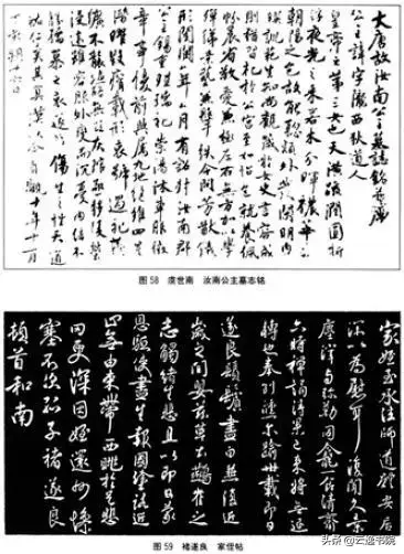 《汝南公主墓志铭》,墨迹纸本(图58),明朝人疑为宋米芾所临。写时虞世南已七十九岁,有唐弘文馆印,现藏上海博物馆。