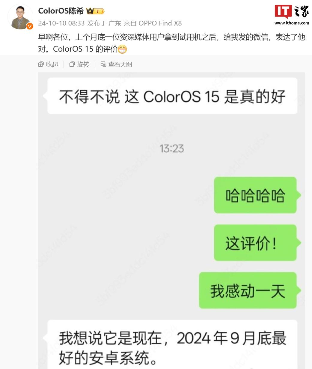 OPPO Find X8 系列和一加 13 手机将首发搭载 ColorOS 15。