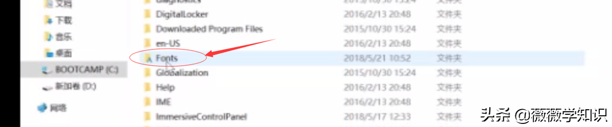 在电脑的C盘中找到在“WINDOWS”目录下“fonts”文件夹。