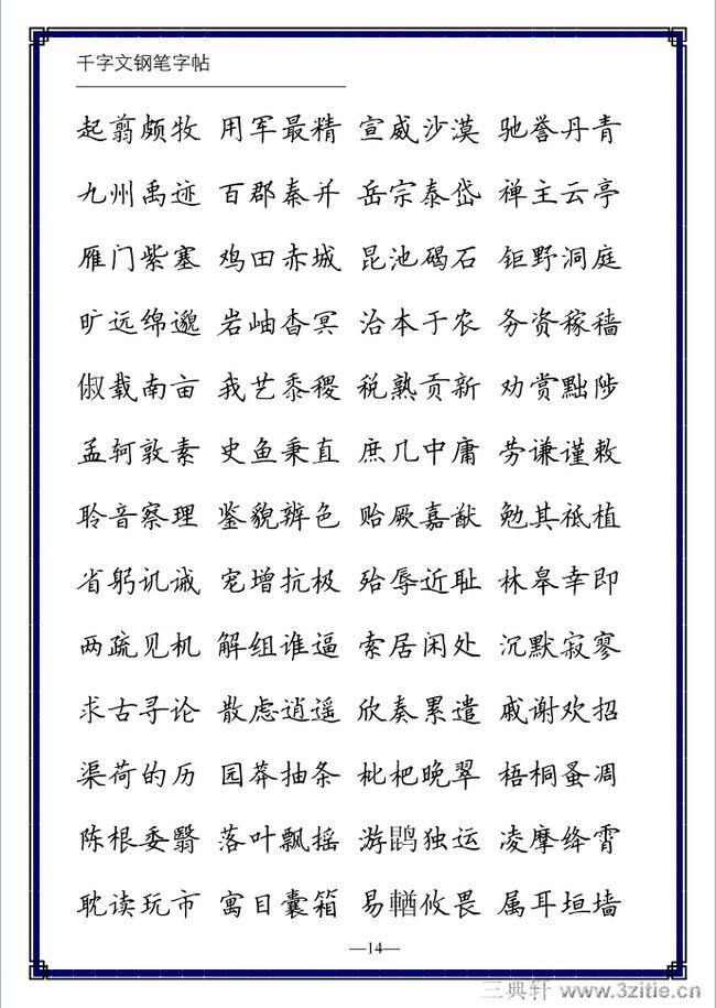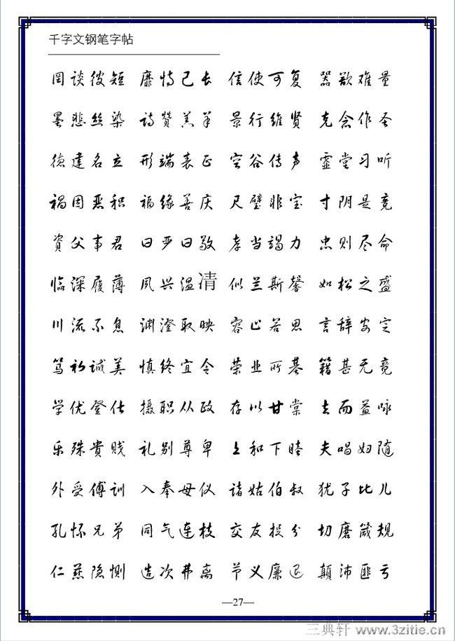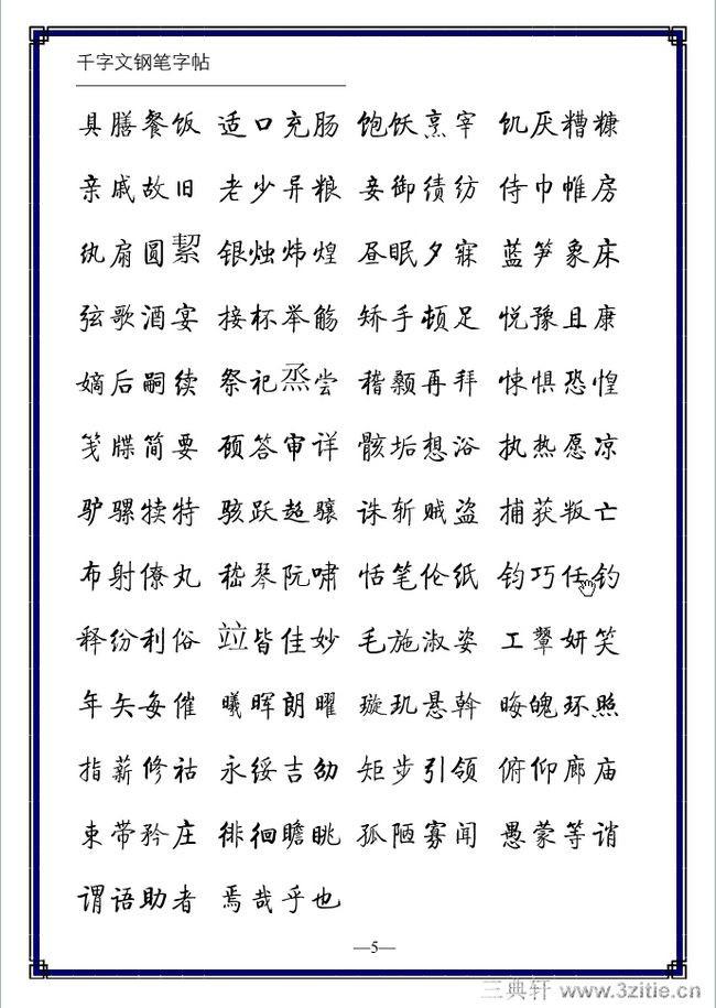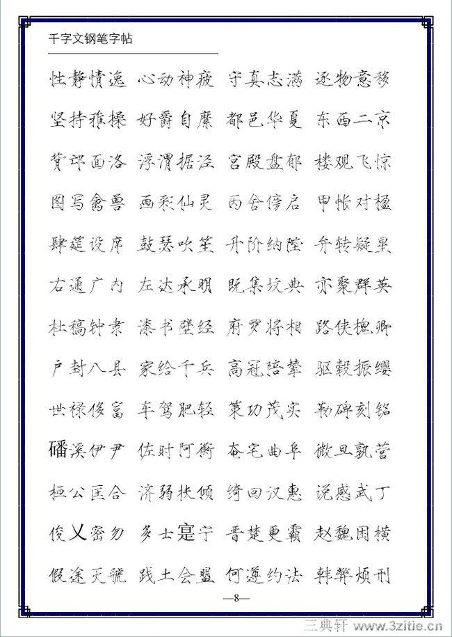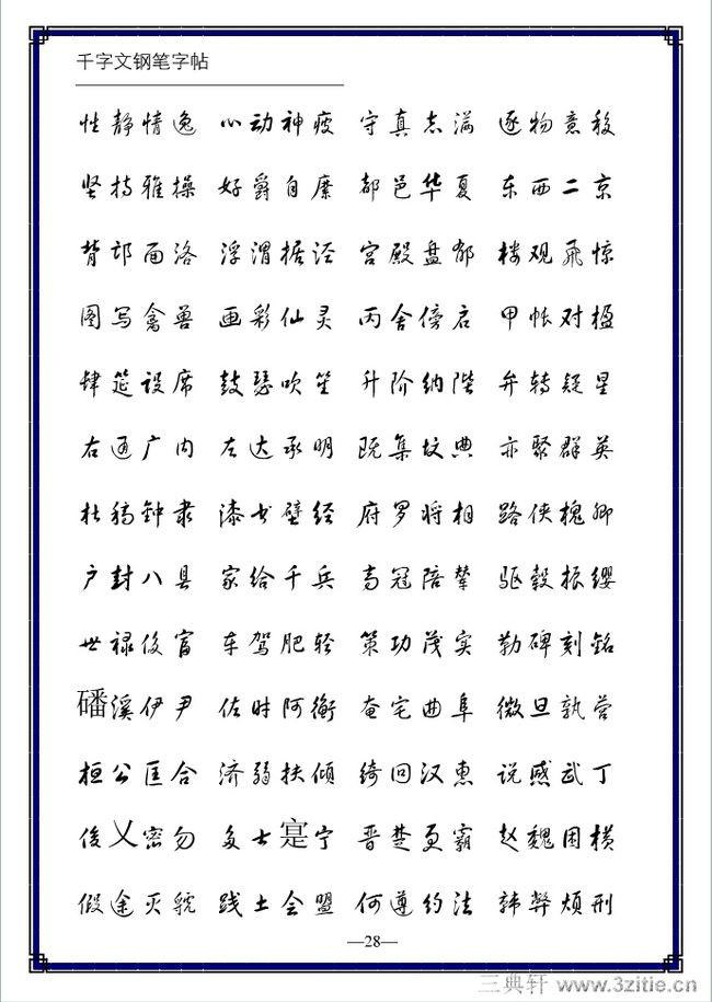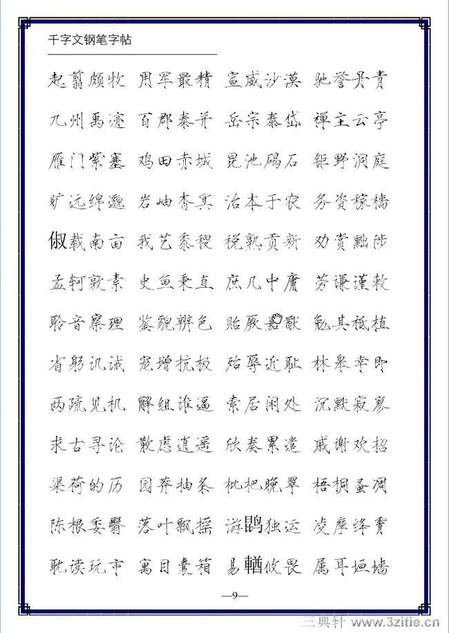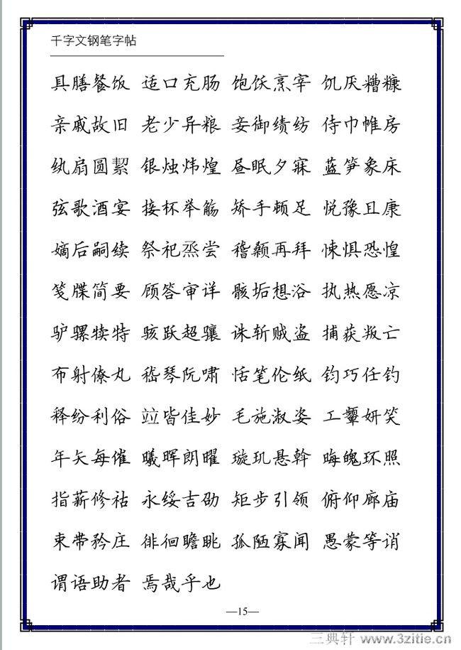 不论是软笔还是硬笔都有五种笔体:楷书、行书、草书、隶书、篆书。现代人书写多以楷书和行书为主。选择钢笔练字字帖主要有两项原则: