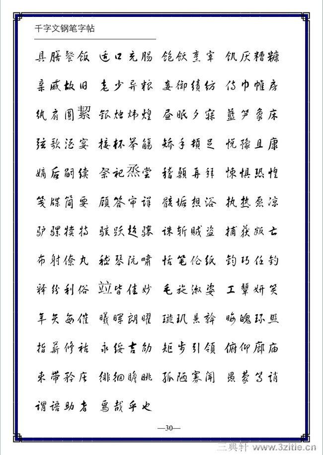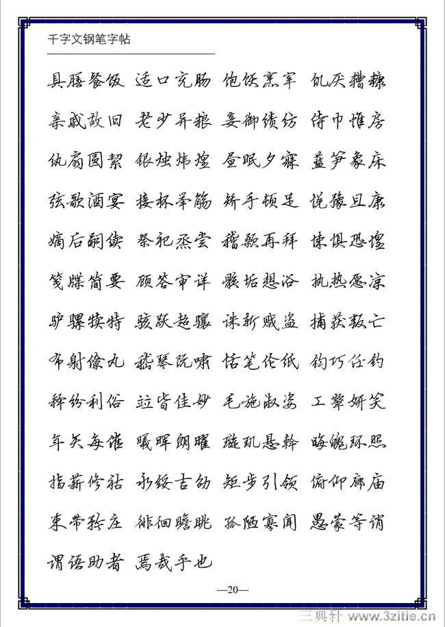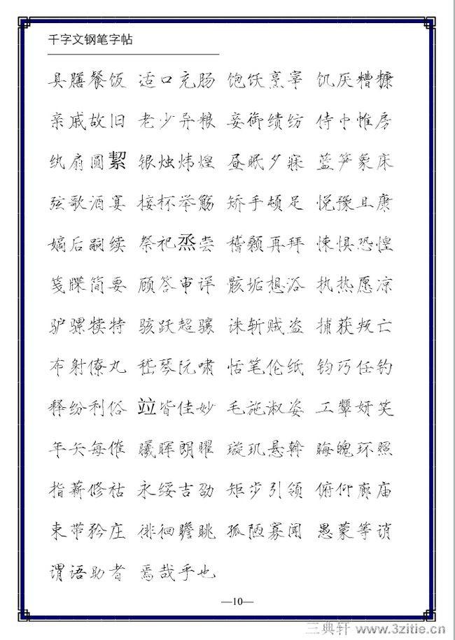 字帖的种类很多。什么钢笔字贴、毛笔字帖等。字帖是初学者的无声之师。初学者应当特别注意字帖的选择,因为字帖的好坏将对初学者的练习及以后的发展有很大影响。我们认为练习钢笔字还是选钢笔字帖为宜,特别对于初学者,使用毛笔字帖进行钢笔字的学习,那是事倍功半的。