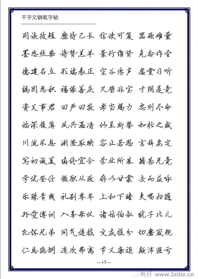 2. 要选择行家公认的优秀范本。目前社会上确有一些质低劣字帖流行,这是商品社会的必然现象。如果初学者随便乱选,可能误入歧途,不仅浪费了时间和精力,还可能沾染一些不良的习惯。因此,选择字帖一定要慎重。