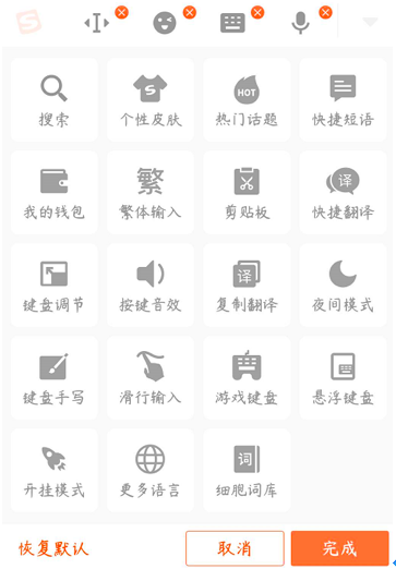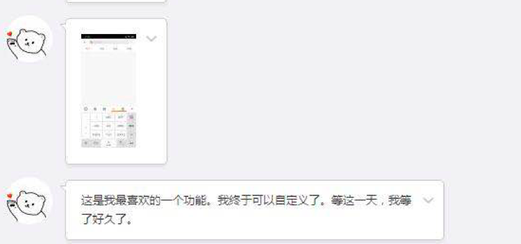 搜狗输入法新推出的自定义工具栏,支持自主设计,想放啥就放啥!除了文字编辑功能,还有快速翻译、更多语言、悬浮键盘等23种神器等你来发掘,整个工具栏都可以自定义。举一个简单的例子!