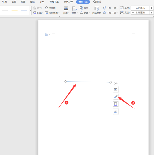 第四步:单击“直线”选项,在文档中划出直线。点击旁边的“形状样式”工具: