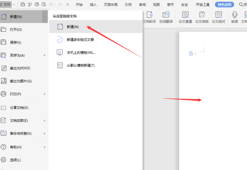 第一步:打开WPS软件,点击菜单栏“开始”,选择“新建”,新建一个WPS文档: