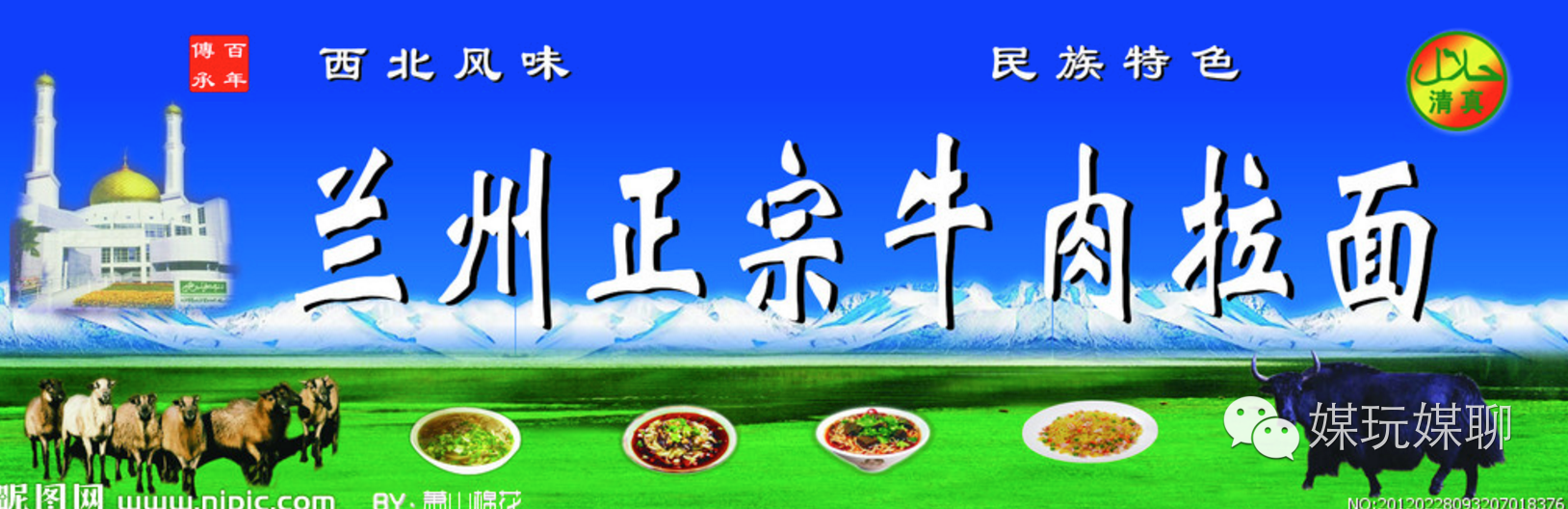 我们来举个例子,兰州拉面、黄焖鸡米饭的标牌是全国各大广告公司(我指的是广告业务公司)必备的模板,淘宝搜也能搜到。他们的共同特点是恨不得把所有的信息都塞进这个不到3米宽的板子中,但真正的品牌视觉并不是这么玩的。