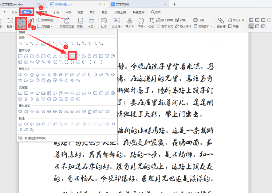 在工具栏选择【插入】,在下拉菜单中选择【形状】,在下一级菜单中选择“六边形”: