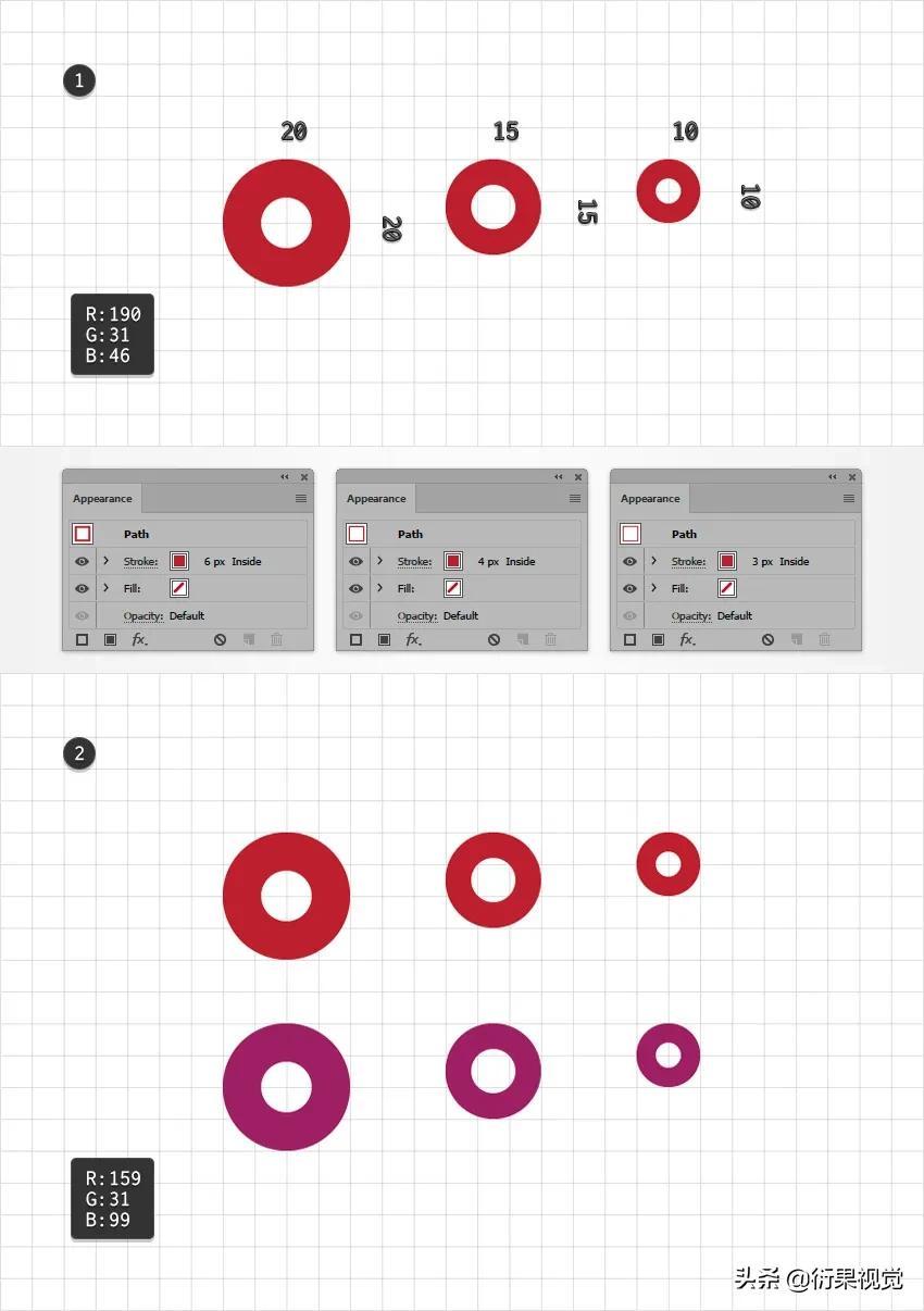 使用椭圆工具(L)创建一个20像素的圆圈。确保没有为该形状设置填充颜色,并将笔触颜色设置为R = 190 G = 31 B = 46。打开“ 笔划”弹出面板,将“权重”增加到6像素,然后检查“ 与内部对齐”按钮。