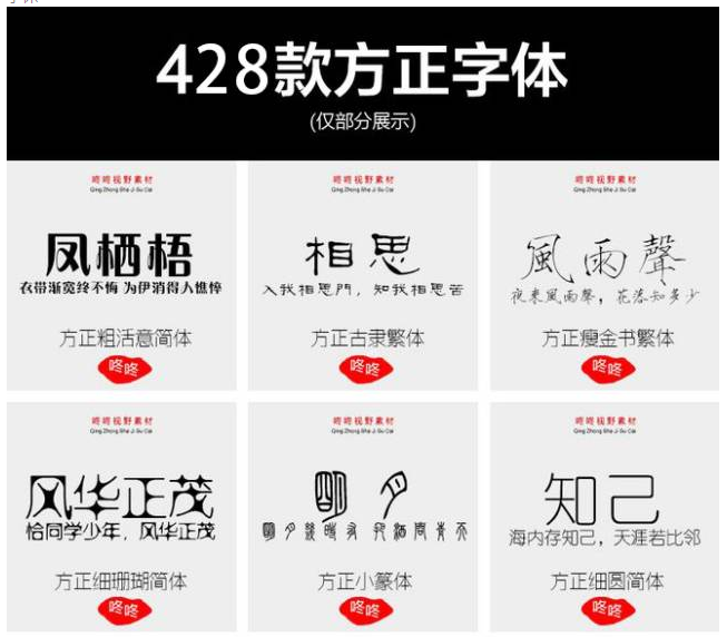 免费字体:包括四种字体:方正黑体、方正书宋、方正仿宋、方正楷体。针对“商业发布”这种使用方式免费。基础字体:包括二十二种字体:方正超粗黑体、方正宋黑...