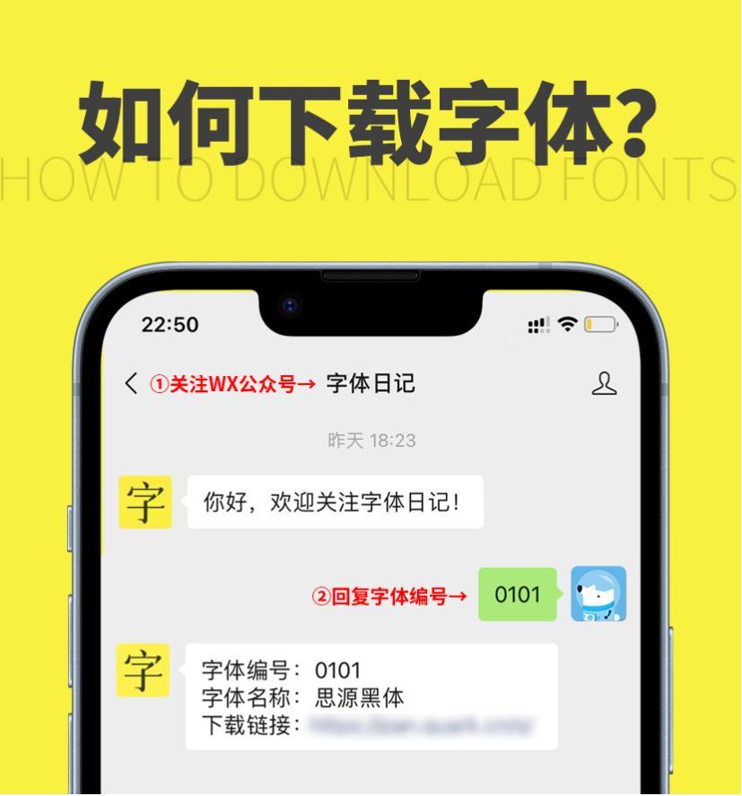 如图所示,回复字体编号或字体名称,免费下载永不迷路。