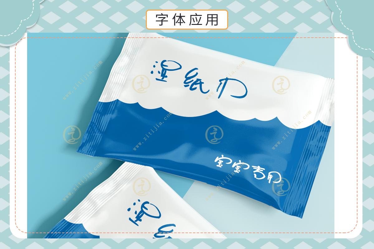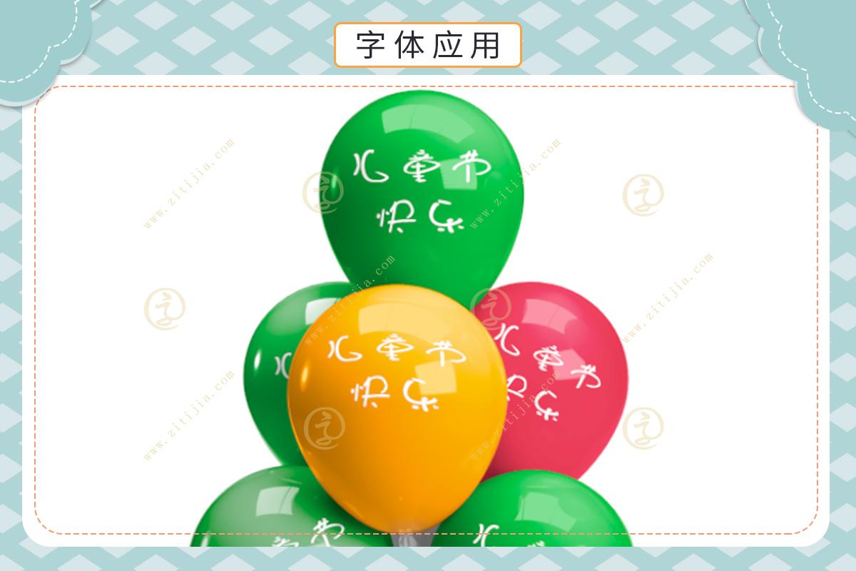 因为其古灵精怪,圆滑多变的特点,加上本身也是按卡通花体来打造的,所以可以很容易联想到能应用于和儿童相关的产品设计所用字体上 ,这也是毫无疑问的,甚至从某种程度上可以说这就是为儿童量身定做的一款字体。在字体风格上,追求了一种鲜明向上的特点,使整个字型灵动而不失严谨,飘逸俊秀,保留了书法原作的原始元素。