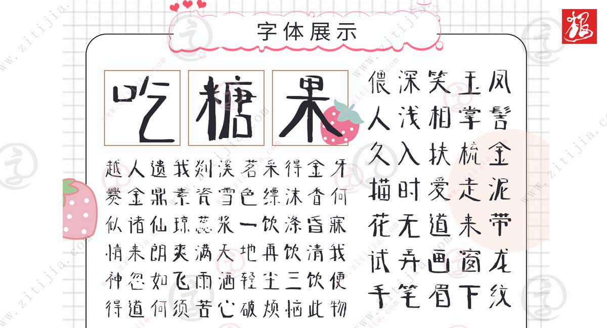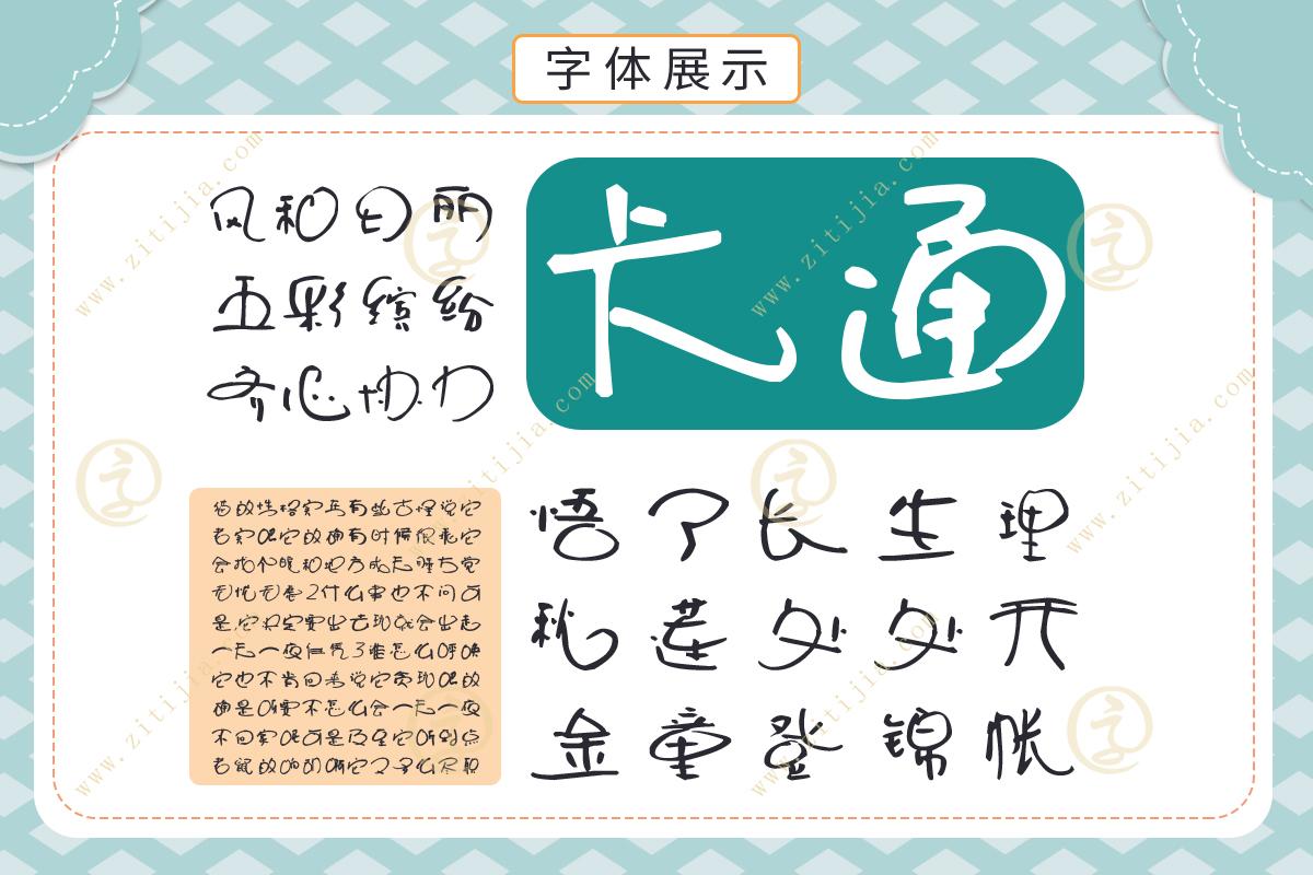 叶根友圆趣卡通体是叶根友亲自设计书写的一款漫画卡通类的手写花体,这款字体库有6763个汉字以及附加的其他英文字体和阿拉伯数字,完全能够满足各种海报啊、广告啊、标题用字。