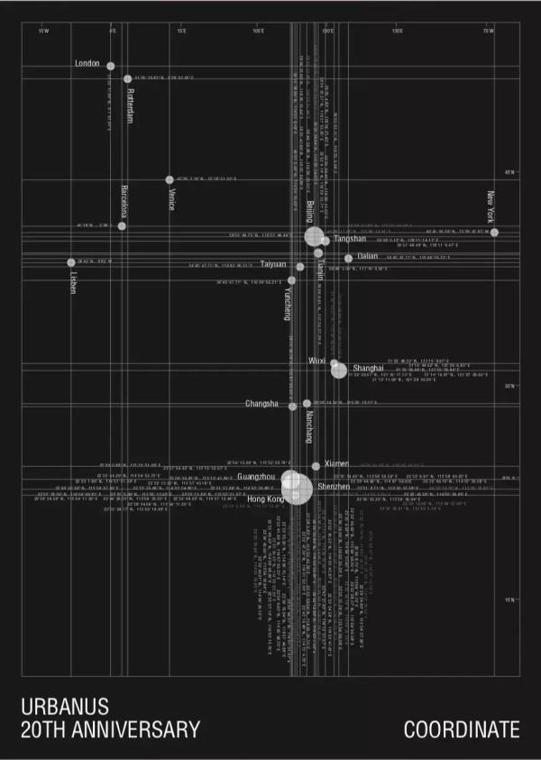 作品描述丨借由URBANUS都市实践建筑事务所成立二十周年的契机,和建筑师们一起全面地对文献进行梳理,从思考的聚焦——观念和项目实践的分布——坐标,在视觉上以信息设计的方式,通过二维与三维的空间对比,反映二十年工作的沉淀。