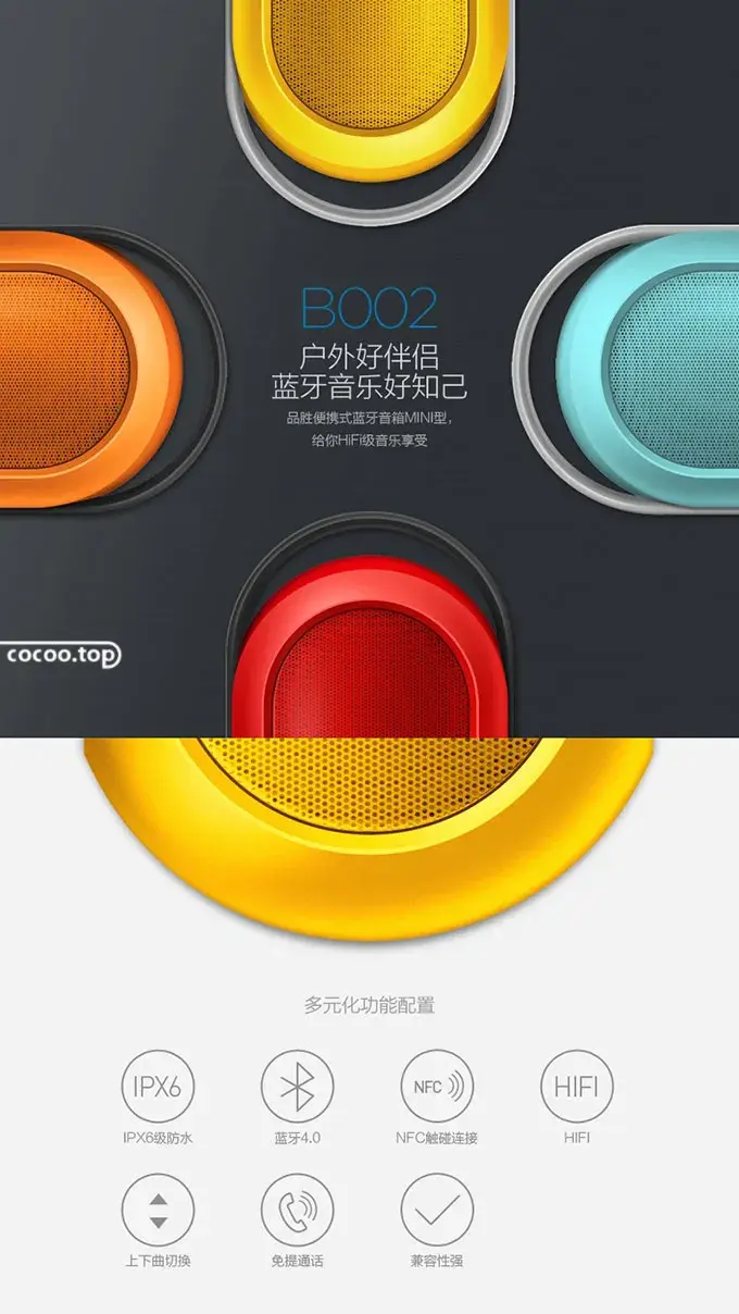 ④渐次式排列,有很强的空间展示感,各产品配图占比从大到小,稳定、有序,透视指引到广告语,给用户稳定自然、产品丰富可靠感。