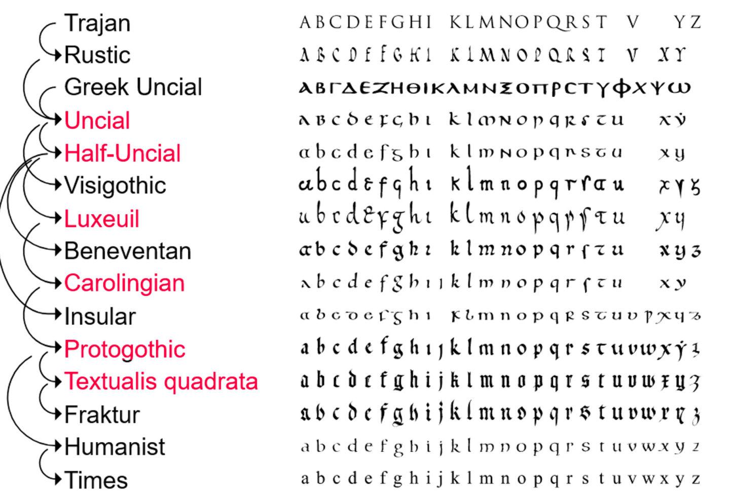 字体风格也像头盔、盾牌风格一样不断演化的仿佛也有一棵家族树