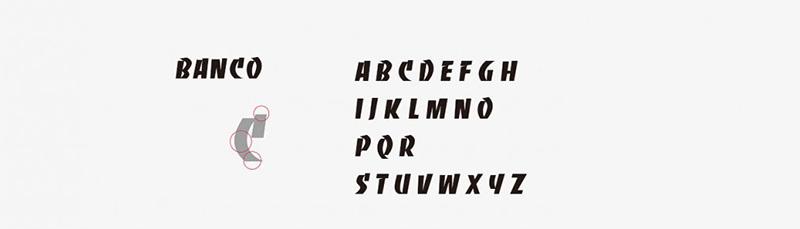 几何构图字型,干净利的线条,极具现代感,可观察字母O几乎为正圆,只有利用工具可以做到,部分字母的骨架带有古典的结构,上升部偏高,X-height偏小,具有宽体,窄体不同的粗细及字面版本。