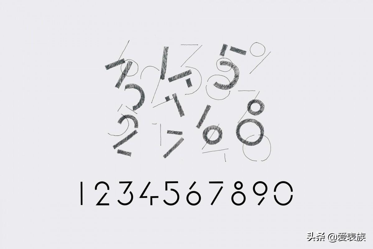 所设计的字体,除了数字1之外,都是由两部分、中间采用相隔空间组成的,没有衬线的摩登字体;是具有很强造型与空间感的字体设计。